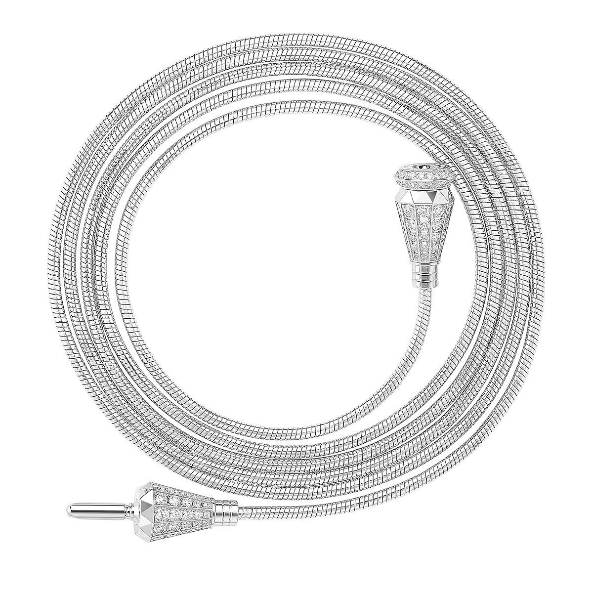 Jack de Boucheron系列靈感來自連接耳機、麥克風的插孔—「Phone Jack」,而啟發自鑽石切面、具連接功能的幾何稜面錐形扣頭,讓鍊子能自由組合、無限連接延長,可從單圈變為多圈手鍊或項鍊,或當作腰帶裝飾。