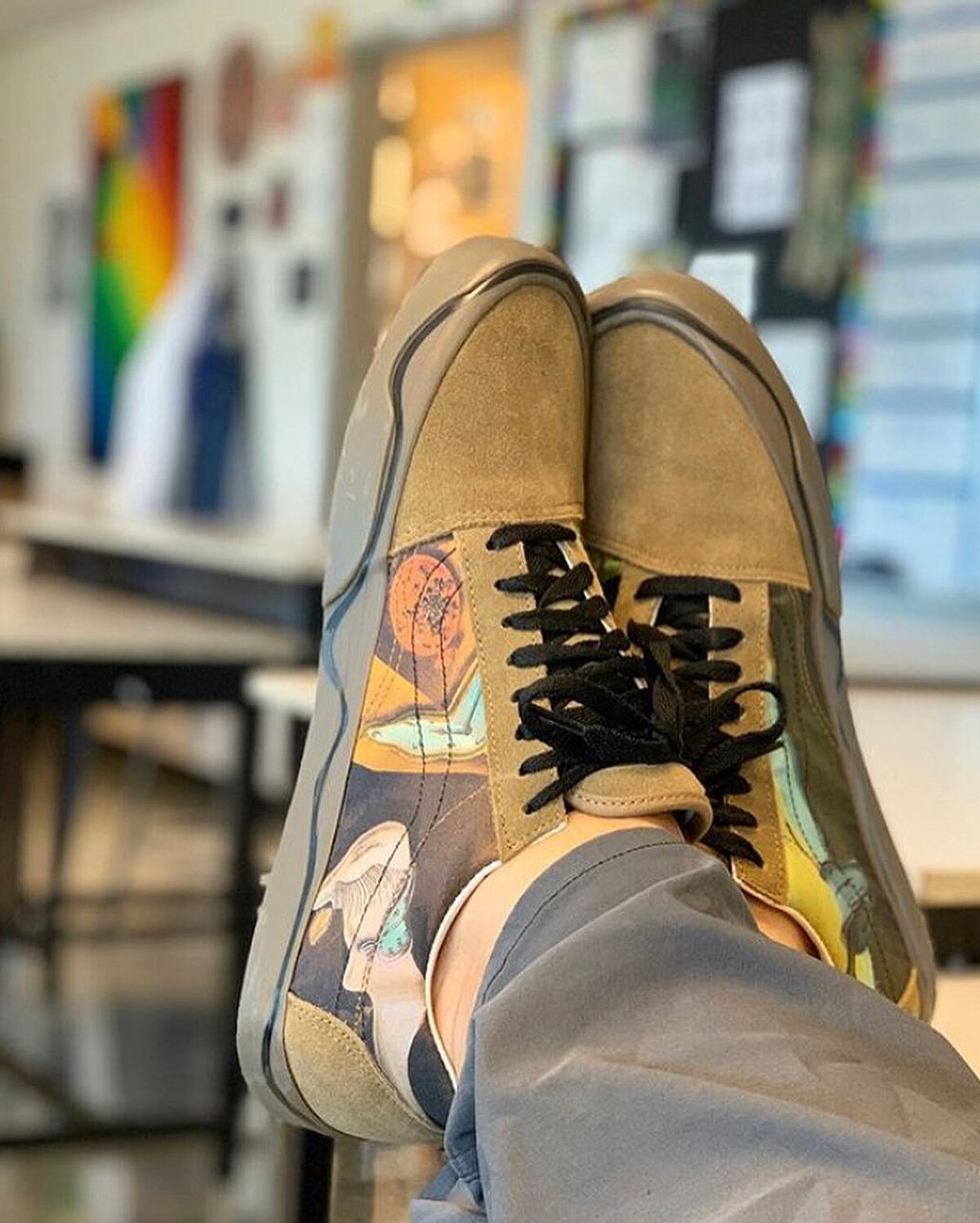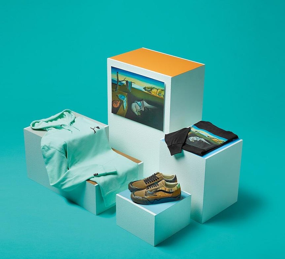現實主義作品是藝術家Salvador Dalí的創作靈感,現實中的客觀形象與潛意識中的意象和夢境主觀世界融為一體,是一大特點。Vans與MoMA便抽取他1931年的知名藝術作品之一《The Persistence of Memory》(1931)圖案注入到Old Skool Twist鞋款,藉由鞋身扭曲構造與中底扭曲線條的設計,帶岀象徵超現實主義感知的意念,穿戴上腳後是出乎意料的好看有型,M編個人私心大推。