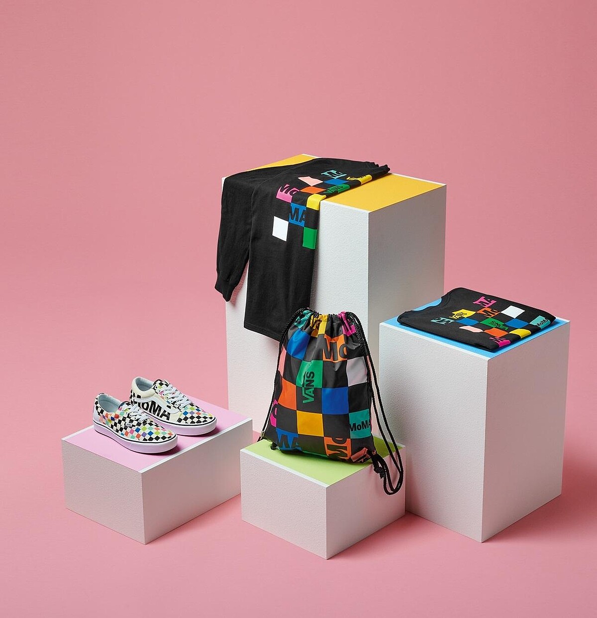 靈感來自擴建和重新構想的MoMA博物館,採用明亮大膽的色彩重新演譯Vans標誌性的棋盤格圖案,並在最新的ComfyCush輕量系列Old Skool與Era中注入了Vans與MoMA的標誌,鮮明強烈的視覺既好搭配又夠搶鏡。