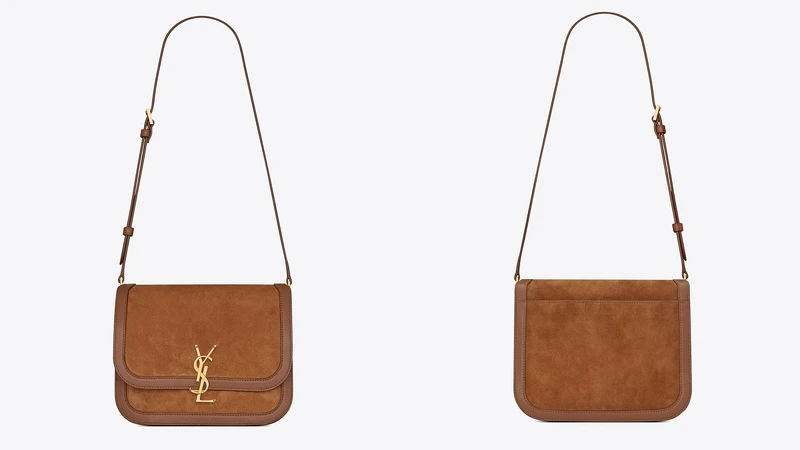出自品牌Solferino系列的Satchel手袋,選用柔軟麂皮面料,並以標誌性YSL金屬鎖釦點綴,在大勢色焦糖棕的加持下,是品牌一包難求的手袋之一。(價格店洽)