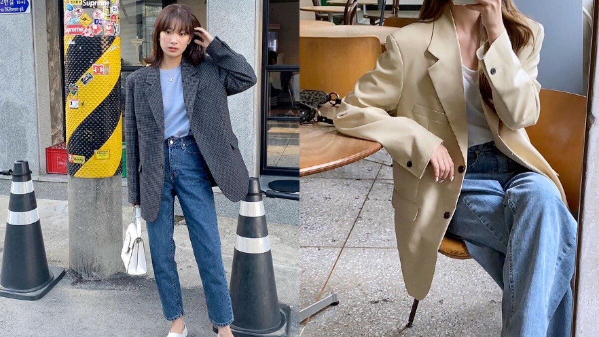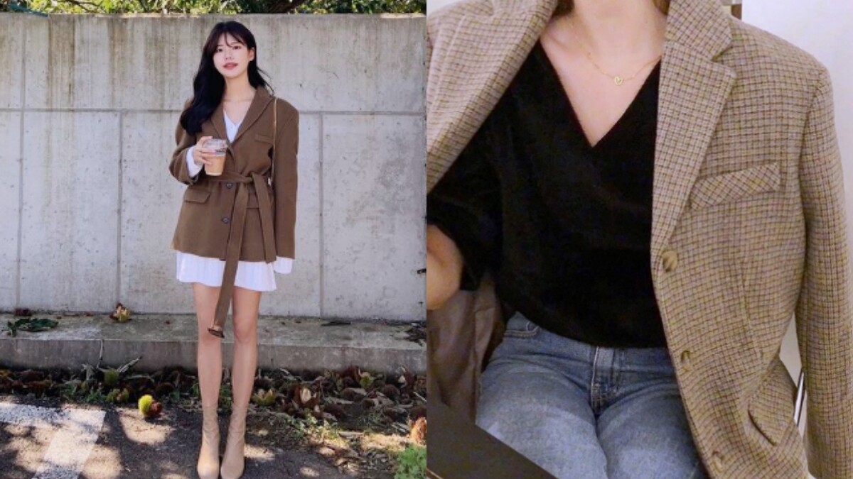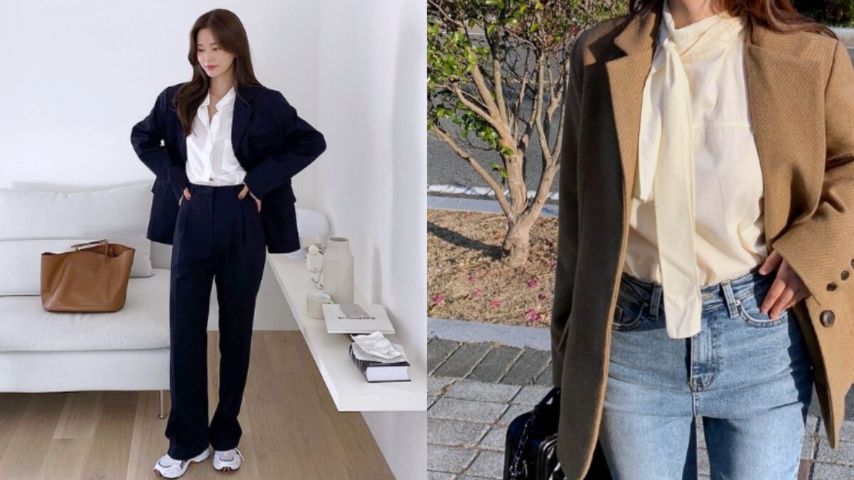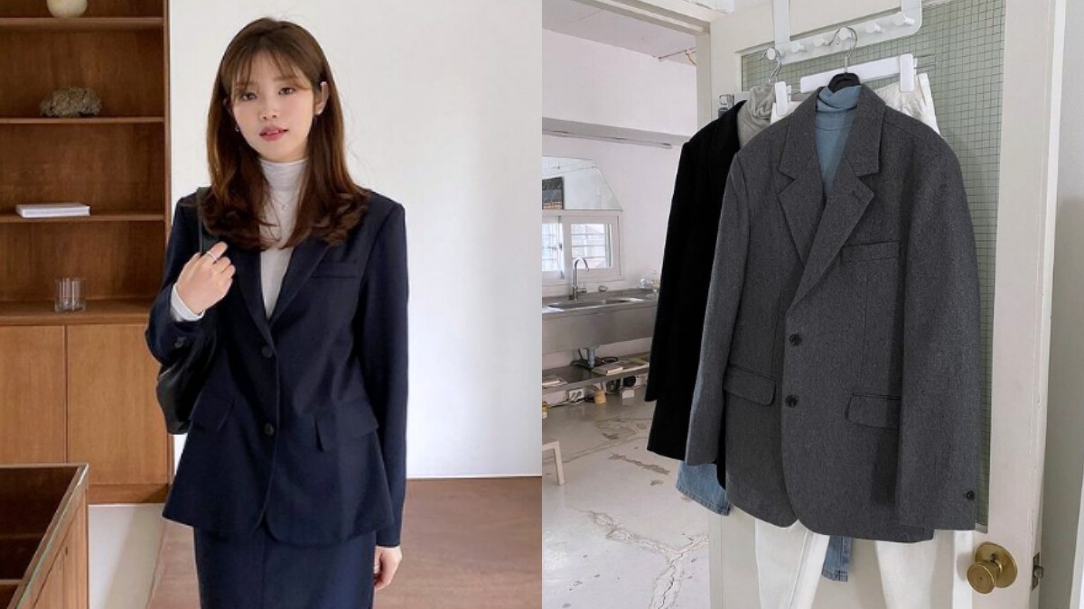 平時有在追蹤韓妞或是追韓劇的你們,一定不難發現韓系穿搭均偏向簡約溫柔派,因此面對西裝外套時,最常見的搭配選擇便是純色系上衣;倘若想走率性風,則可穿上合身剪裁的高領針織衫,襯出幹練的一面(相較寬鬆的高領更多了俐落氛圍)。
