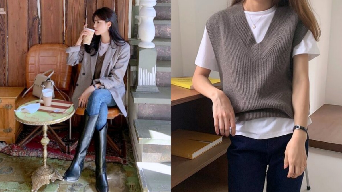 想要豐富造型層次,那就於純色上衣外罩上一件今年秋冬正夯的針織背心,輕鬆帶入學院風的高雅氣質。