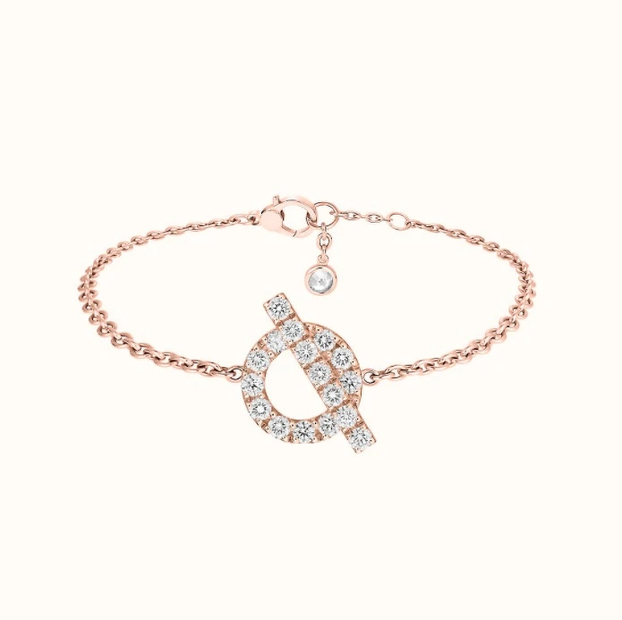 Top.1 Hermès Finesse系列玫瑰金鑲鑽手鍊 (0.55克拉)