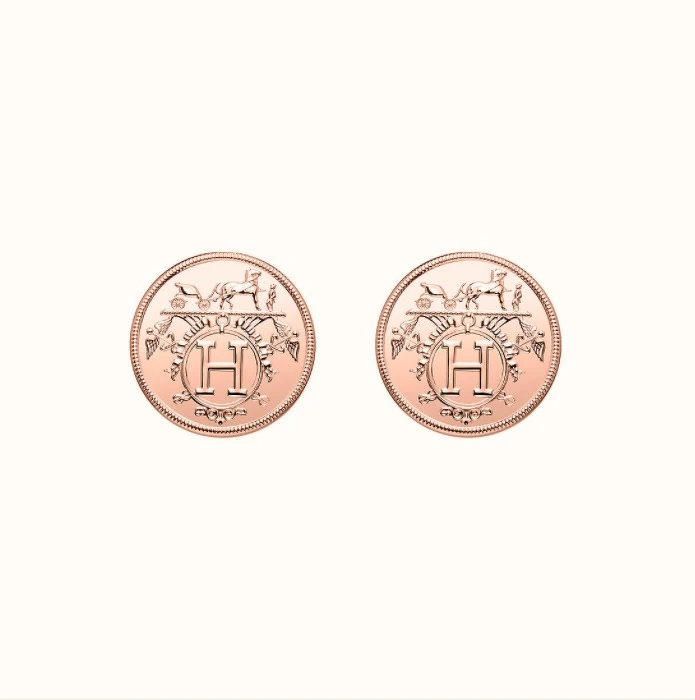 愛馬仕家徽Hermès Ex Libris就是這款耳環的設計靈魂。不管是駿馬、H字樣等等圖案細節都相當精美,錢幣造型的樣式既復古又時髦,定價也相當可愛,小資女入手愛馬仕不用再空想!