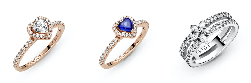 Pandora Rose璀璨之心戒指NT$3,680,Pandora Rose璀璨藍心戒指NT$3,680、星鑽雪花925銀雙層戒指NT$3,680。