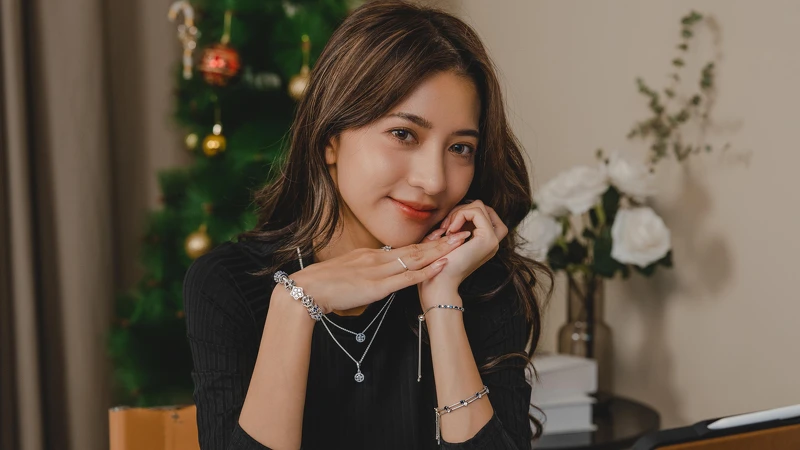品味過人的妍安則選擇以簡單素淨針織衫來配戴閃爍璀璨的Pandora Timeless永恆閃耀系列,散發溫暖晶燦低調奢華的高雅氣質,完全是美到超犯規的境界。