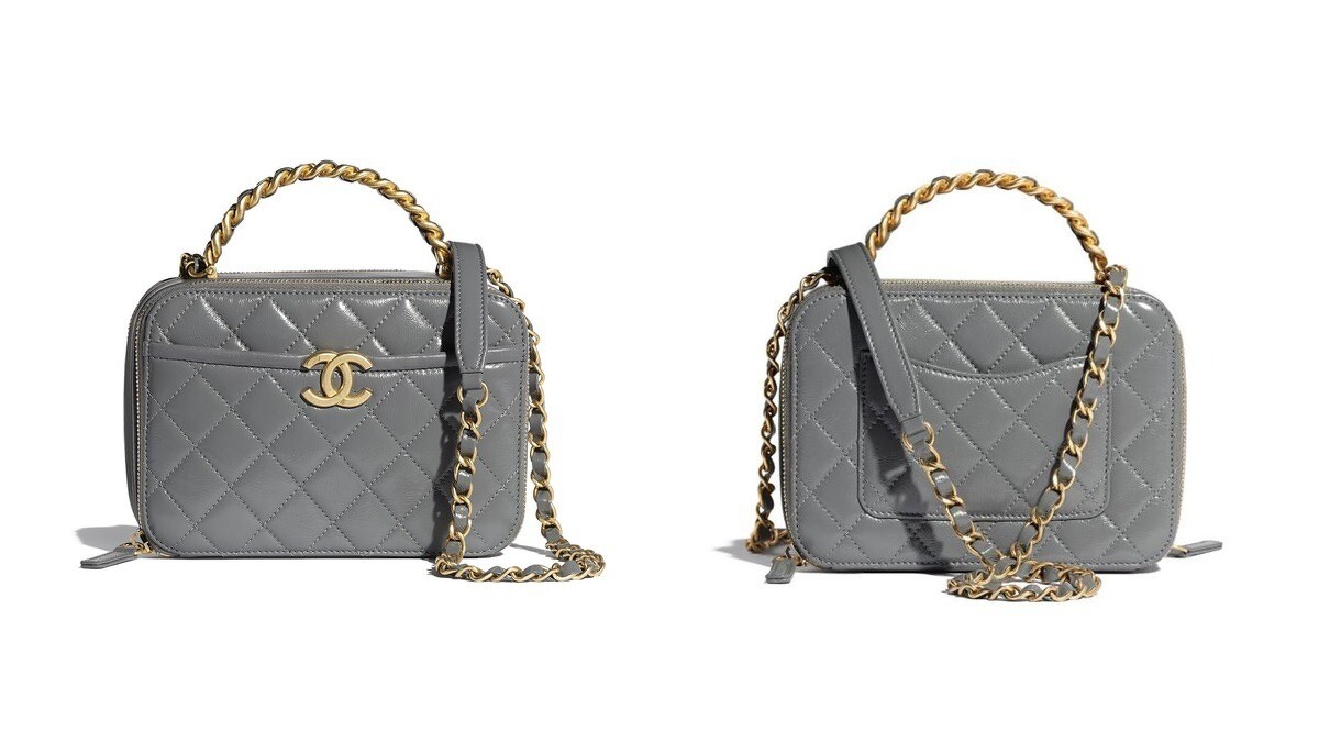 採用亮面皺紋小牛皮製成的Chanel化妝包,注入品牌經典菱格紋設計,在灰、金兩色交織下,顯得格外優雅、貴氣。(NT136,200)