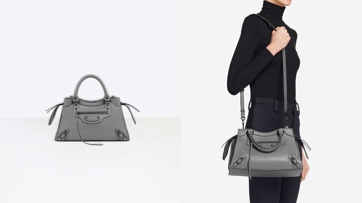 2020年秋冬系列亮相的Neo Classic機車包,延續俐落的建築闊型,改以沉穩灰色調呈現,展現摩登、個性的樣貌。(約NT69,000)