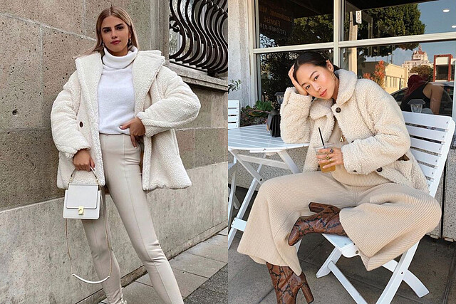 如果你感到常見的大地色系無趣,不妨看看其他多種色系的泰迪熊外套,不管是飽和度超高的寶藍色及正紅色,又或是溫柔的粉嫩色系,都可以讓你在眾人間脫穎而出!在秋冬的季節裡穿上鮮明的色系,可以簡單地為造型增添層次外,還注入了輕盈活力的氛圍!(圖片來源 1 、2、3、4)