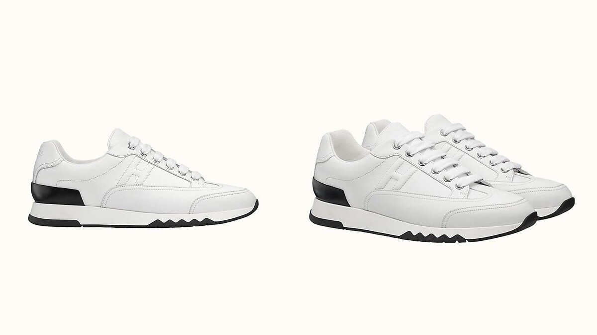 以純白小牛皮面料打造的Trail運動鞋,鞋側身大寫H標誌絕不難辨識,除了低調的單一色選,愛馬仕也推出大膽鮮明的豐富配色,為穿搭提供更多選擇。(約NT28,000)