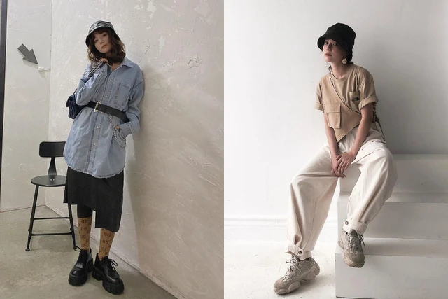 鬆身單品容易有「吃比例」的風險,若是特別在乎這眉角,請學習琦琦的兩個技巧避開地雷!可以選擇繫上腰帶製造「腰線提高」的視覺效果,下身搭配短褲更顯修長;又或當上下身當品皆寬,隨意將上衣紮進褲頭,不僅能將比例拉長,也能保留中性男孩感。以上兩種搭法 Boyish 味十足,可運用飾品帶出微甜感,金屬扣腰帶、垂墜耳飾都是好選擇。(圖片來源:1、2)