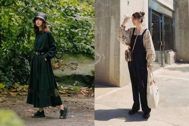 One-Piece 完全是懶人福音,思考穿搭耗費的時間和心力直接減半!最常見的 One-Piece 單品就屬連身裙、吊帶褲莫屬。前者容易產生「骨盆拉寬」的錯覺,搭配腰帶抓出腰身是必須,一件式單品難作出變化,故配件如帽飾、鞋款、耳環的選擇就顯得更重要了;若擔心吊帶褲太過陽剛,內搭可以選擇設計別緻的女款上衣,琦琦選擇的開襟燈籠袖圖騰上衣,就巧妙揉合女人味與男孩感。髮型也是能作出變化的細節,綁起包頭、紮單邊魚尾辮都能製造不過於甜膩的鄰家氣息。(圖片來源:1、2)
