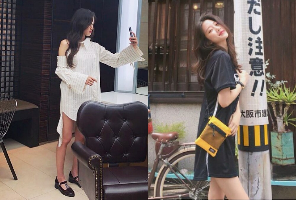 正值青春年華的文佳煐,私底下的穿搭不外乎皆充滿朝氣,像是一件式的襯衫、T-Shirt或Polo衫,皆可作為洋裝穿搭,同時也使腿型看起來更加顯瘦,甜美俏皮指數瞬間破錶。
