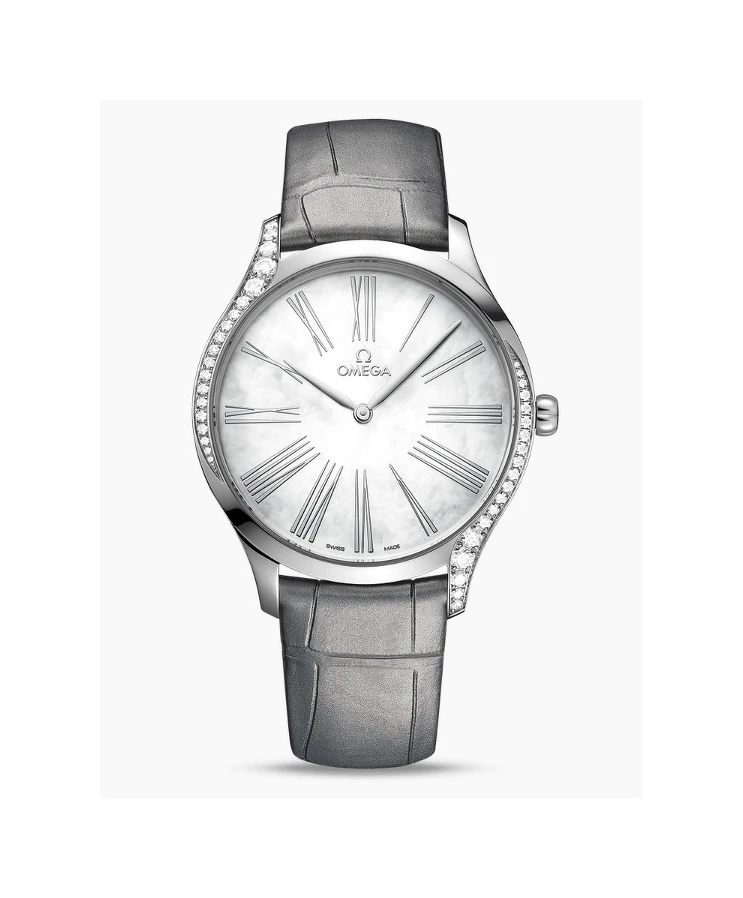 Omega 歐米茄Trésor 碟飛系列手錶的簡約設計和優雅氣質,深受許多錶迷擁戴,包括側身纖薄的錶殼,兩側還鋪鑲鑽,更顯秀氣曲線,再與修長的指針與羅馬數字搭配,以及錶冠上紅色液態陶瓷結合品牌商標構成花朵圖案,都是越看越有趣的細節元素。