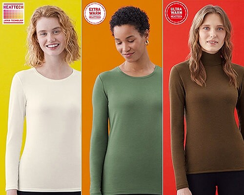 首先介紹的便是眾人皆曉的發熱衣,光是Uniqlo的Heattech系列就分作暖、極暖、超級暖三大類,消費者可依照個人需求購入合適的款式,此外,除了上衣,Uniqlo也延伸出內搭褲襪,使雙腳不在冷冰冰。