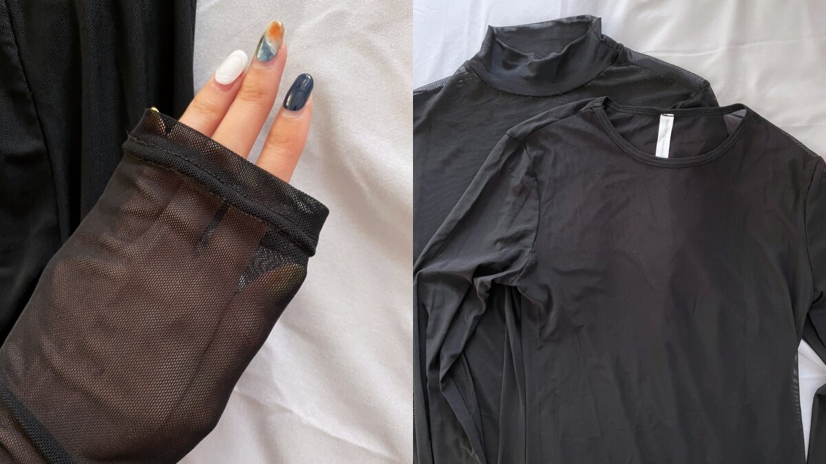 這邊編輯還要特別推薦一個和絲襪相似的上衣,不但有著高密度極的編織網設計,與剪裁貼合的衣物搭配也完全不顯胖。哪裏買?台灣街頭上常見的3C襪子店就可以找到囉!款式分作圓領及中高領,便宜、實用又保暖,女孩們還不快去試試。