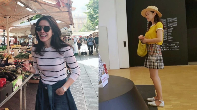 各種風格皆能駕馭的孫藝珍,私底下也常穿著條紋T-Shirt、格紋百褶裙、滾邊T-Shirt現身,就像是大學畢業的少女般,完全看不出今年將邁入39歲。