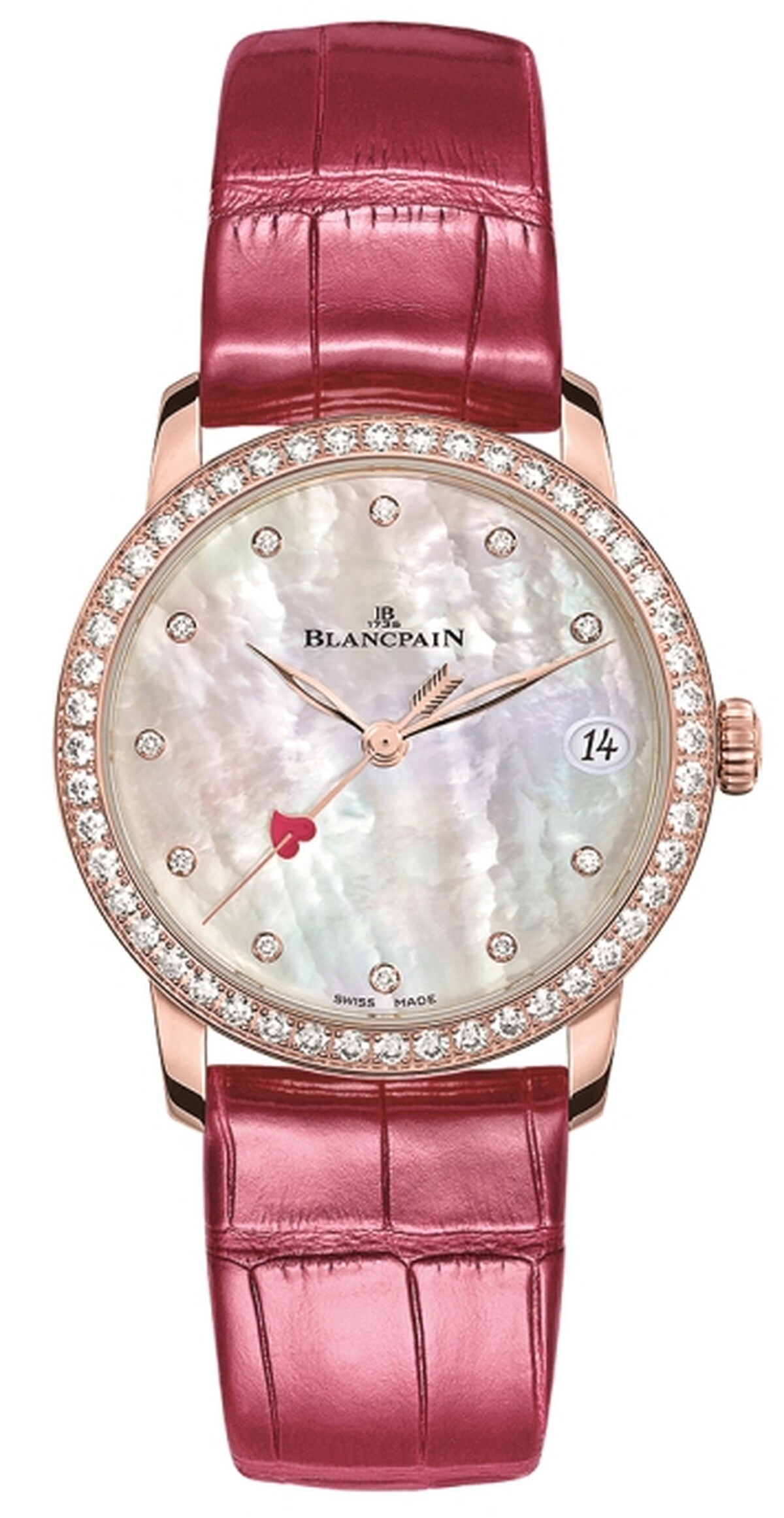 Blancpain從2001年起每年情人節2月14日會上市一款情人節特別系列限定女錶,2021年則以Villeret系列日期女錶為藍本,面盤改為珍珠母貝,秒針化作愛神丘比特的箭,後端還裝飾上一顆愛心。如果你財富自由、與另一半感情穩定,每年都收一只特別系列女錶來收藏,感情肯定再升溫!