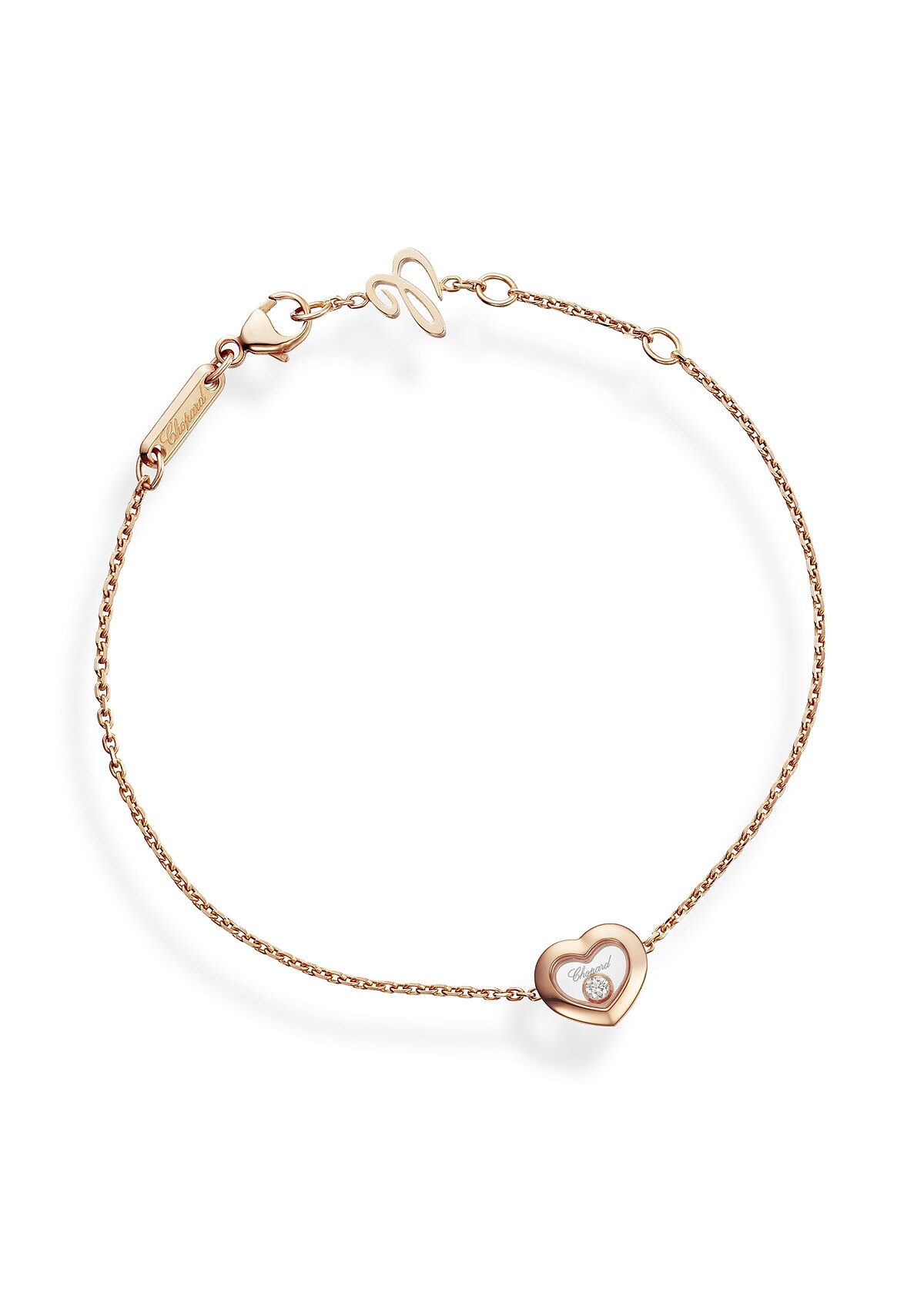 Happy Diamonds Icon系列手環,18K玫瑰金鑲0.05克拉鑽石搭配單顆滑動鑽石,售價NT56,000