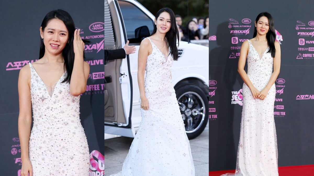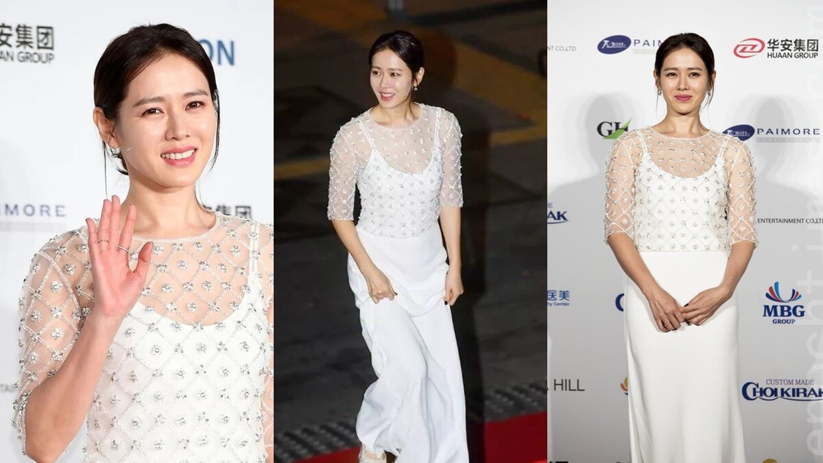 2014年舉辦的第51屆大鐘獎,孫藝珍以電影《海賊:汪洋爭霸》拿下最佳女主角,選擇仙氣滿滿的純白色禮服走上紅毯,幾何感的刺繡設計,展現孫仙姣好的身材曲線。