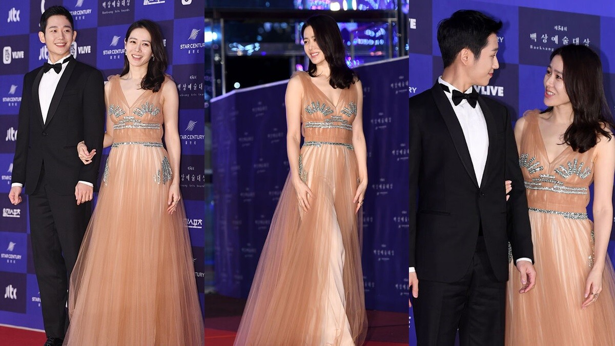 2017年以《德惠翁主》獲得女子最優秀演技賞肯定的孫藝珍,放下飄逸的秀髮,搭配裸色刺繡長洋裝出席第53屆百想藝術大賞。