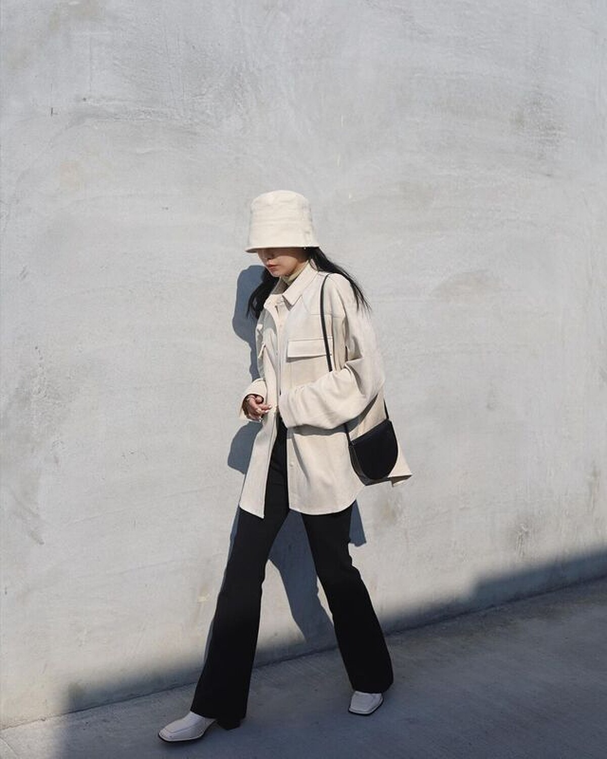 合身又顯瘦的喇叭版型黑長褲搭配微寬鬆的乳白色襯衫外套,看起來既隨性又平易近人,同時也能拉長腿部比例,讓妳整個人看起來又仙又瘦,明天上班就這樣穿吧!(圖片來源)