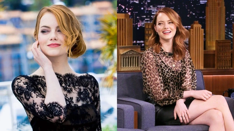 不只能駕馭性感穿搭,艾瑪史東最擅長的還是宛如女神的氣質穿搭,透膚上衣裡面搭個小可愛,微微透出膚色的小性感更加迷人,建議穿這類型的衣服,可以搭配高腰下身,才會讓整個人的比例拉長。