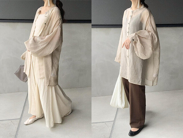 長版透膚單品也是許多女孩的心頭好,下著搭配落地西裝褲仙氣滿分!如果想讓整體造型更添細緻感,也可以選擇側開衩或特殊剪裁款式,畢竟春季不若秋冬能以多層次提升造型感,單品選擇也就顯得更加重要了。