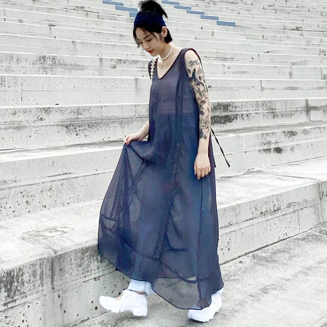 透膚單品並非只能穿出柔美風格,要率性、型格都不是問題,若想營造出幹練俐落感,可以考慮帶有腰身或是短版的款式,相對於長版單品仙氣飄飄的感覺,別帶一份微性感女人味。
