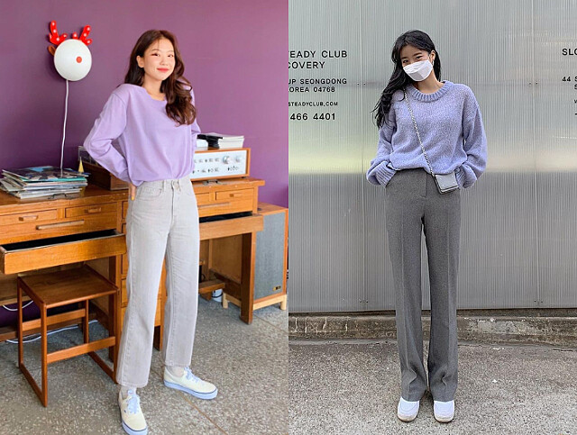 除此之外,芋紫色和不同色階的灰也能完美相襯,若想營造休閒感選淺灰,想內斂些就挑深灰,可隨心依當日的穿搭需求彈性調整。