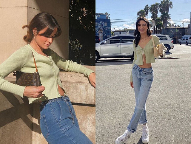 鼠尾草綠本身色調特殊,搭件牛仔褲就很有型,配上白襪及球鞋輕鬆營造美式休閒感,穿跟鞋則能帶出俐落風格,簡單紮個低馬尾或用鯊魚夾盤起頭髮,流露令人無法抗拒的清爽氣質。