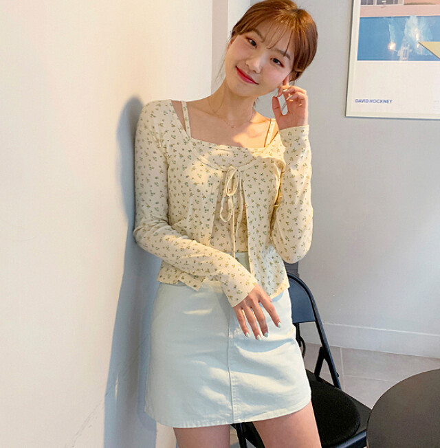 若怕碎花元素顯老,上衣款式可選擇背心,或左圖中這種「兩件式」的特殊款,透過剪裁帶出巧思與俏皮感,下身簡單搭配丹寧褲、短裙就很好看。