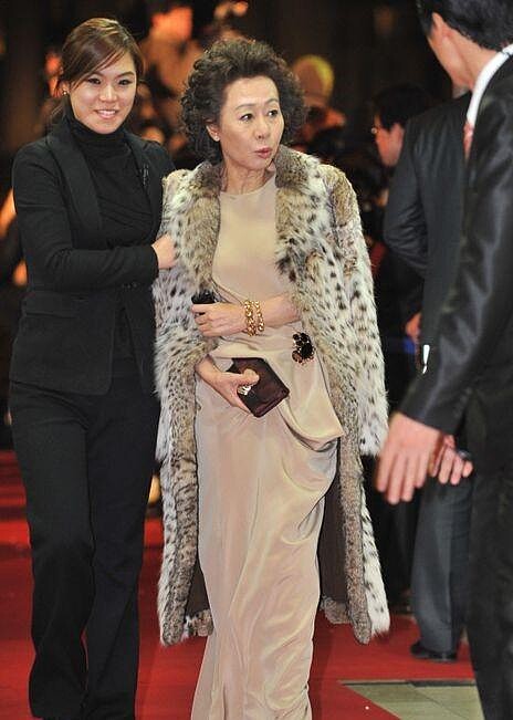 同樣在2010年登場的第31屆青龍電影獎,以電影《下女》拿下最佳女配角獎,尹汝貞穿著米色的絲質長洋裝,搭配狂野的豹紋大衣踩上紅毯,霸氣的豹紋圖案使她成為全場目光焦點,絕對是整晚的氣場女王。