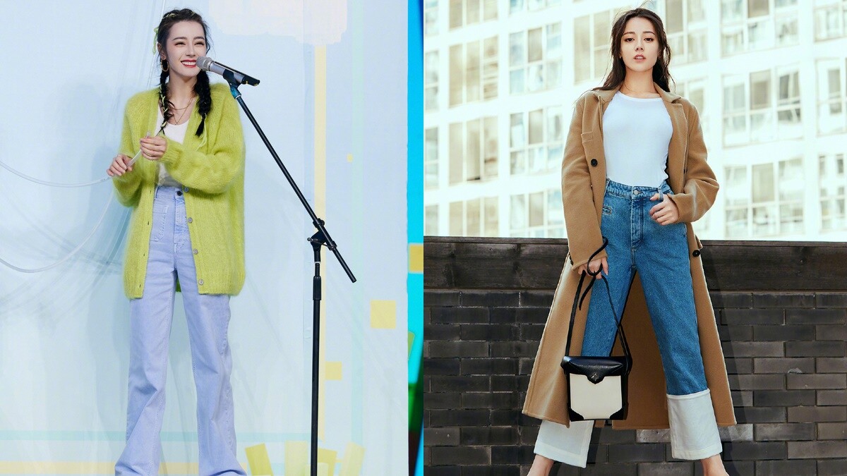 高腰牛仔褲是近幾年女孩們熱愛的單品之一,迪麗熱巴時常以把牛仔褲跟白TEE作搭配,仔細一看,白TEE都是簡單、素面的款式,此時,再隨手套上外套或罩衫,不但能遮掉亞洲女孩在意的大屁屁,還多了一份時髦感。