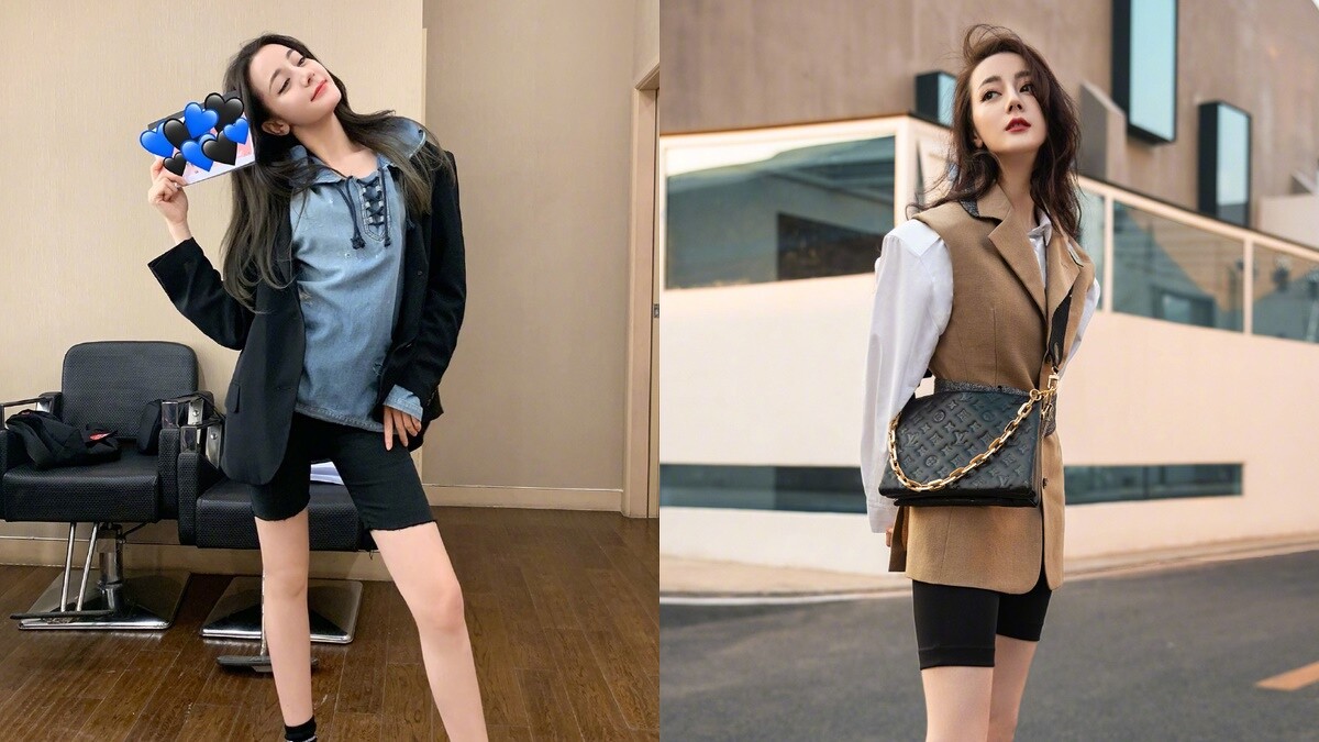 自從健身熱潮興起,高腰單車褲大量出現在名人們穿搭,迪麗熱巴同樣沒放過,不同的是,迪麗熱巴選擇休閒運動背心搭配,卻在外頭罩上較為正式的西裝外套,瞬間讓時髦感大增。