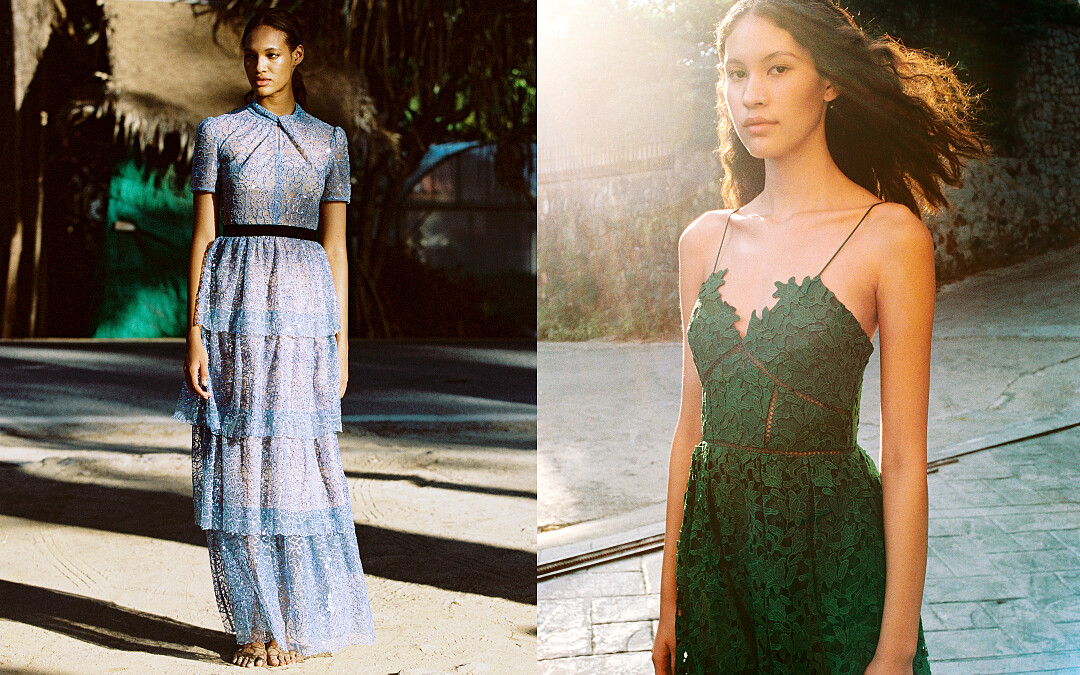 春夏服裝Collection部分,則融入生機勃勃的繽紛色彩如:樹影的墨綠、淺灘的灰藍、日出的亮橘、日落的殷紅、陽光灑落的米黃,self-portrait向來擅長且備受推崇的標誌蕾絲元素,也不會缺席在系列作品中,以令人驚喜的色調與高雅輪廓呈現。