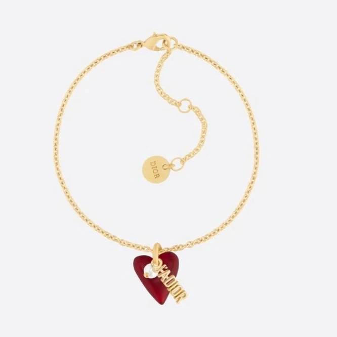 運用精緻金屬鍊帶打造,綴以酒紅色玻璃心形吊飾和純白珠飾,非常適合作為告白禮物。
