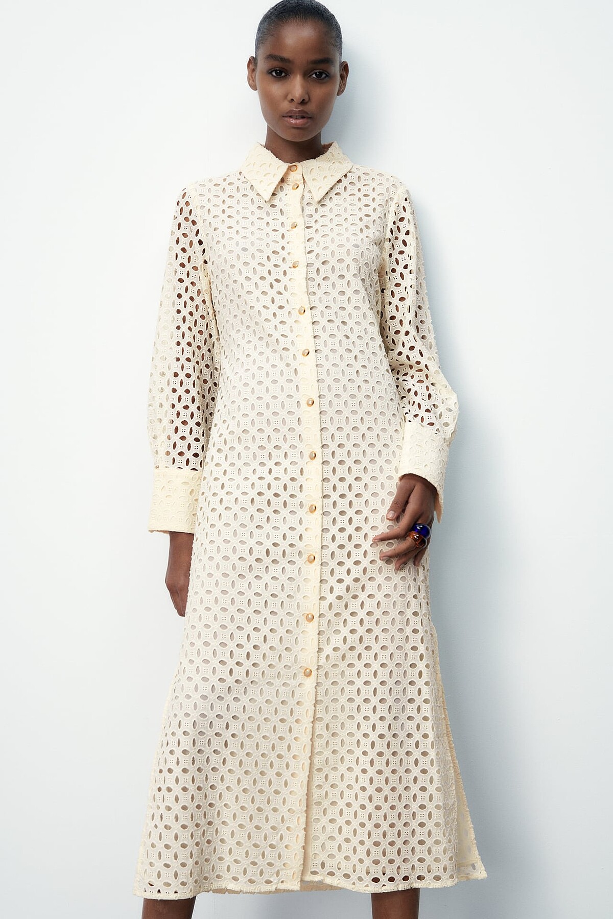▼白色蕾絲/刺繡洋裝推薦款式2:Zara 蓬袖中長版洋裝,售價NT$1,490