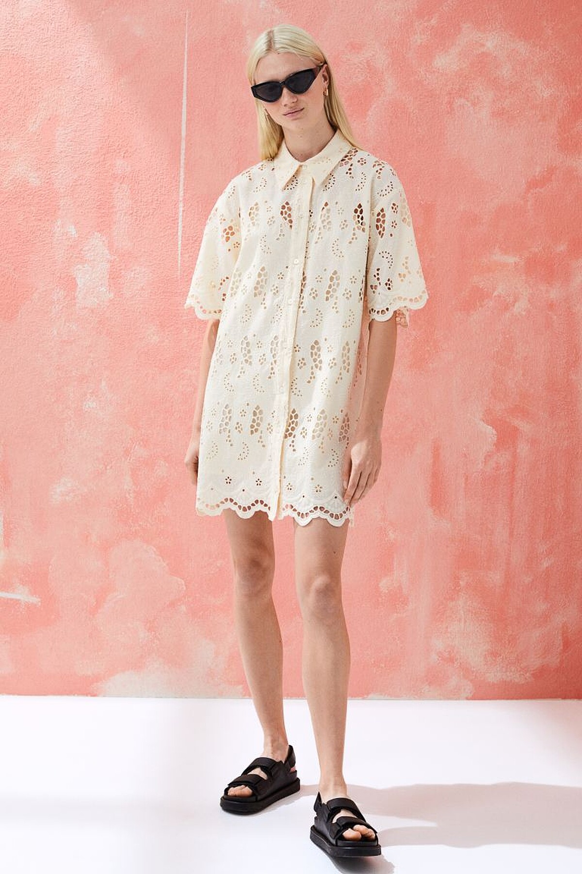 ▼白色蕾絲/刺繡洋裝推薦款式3:H&M 英式鏤空刺繡洋裝,售價NT$1,799