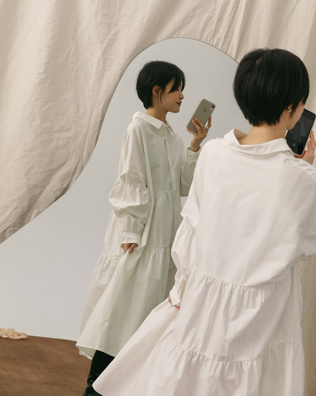 白色襯衫式洋裝