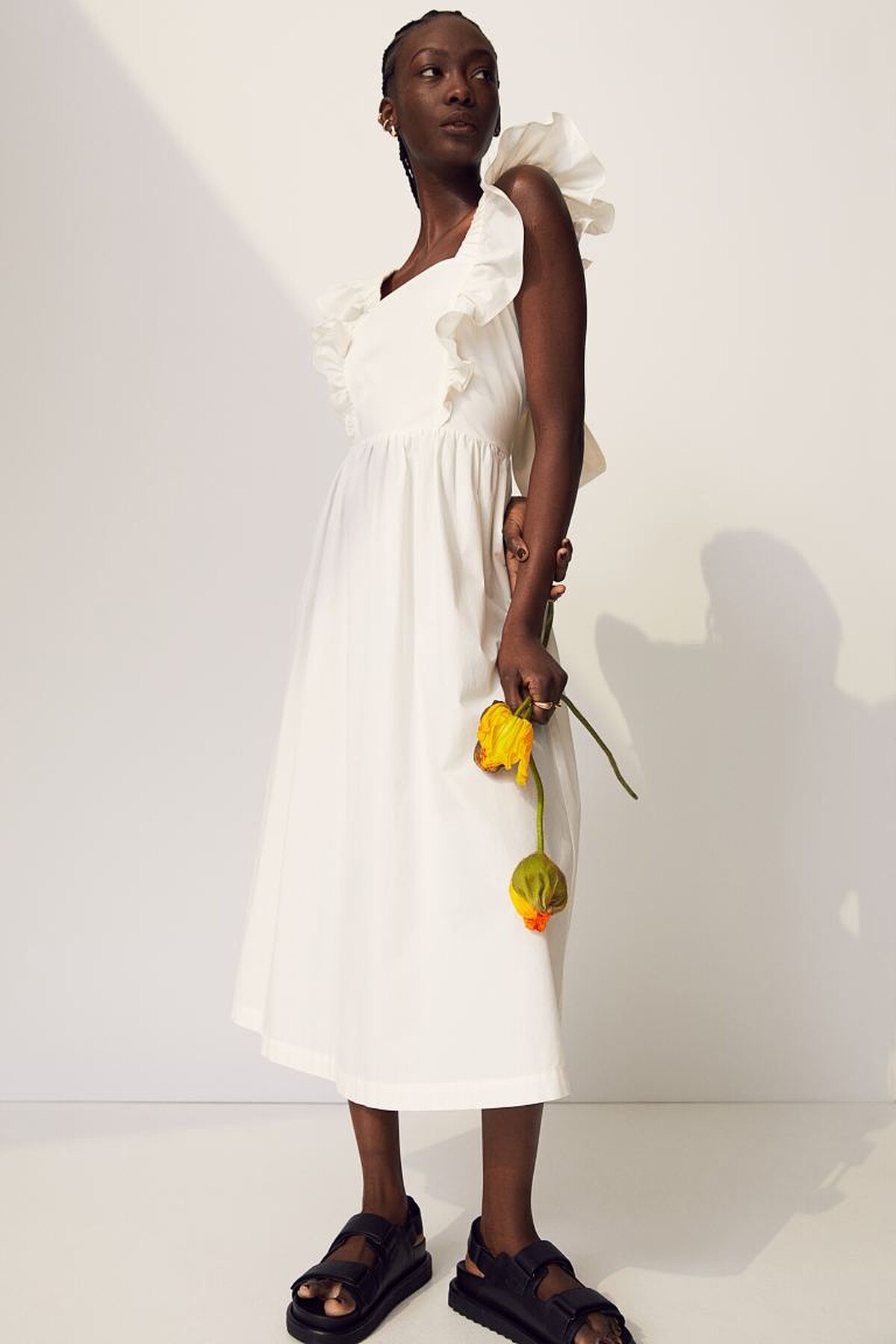 ▼白色寬鬆洋裝推薦款式2:H&M府綢棉洋裝,售價NT$999