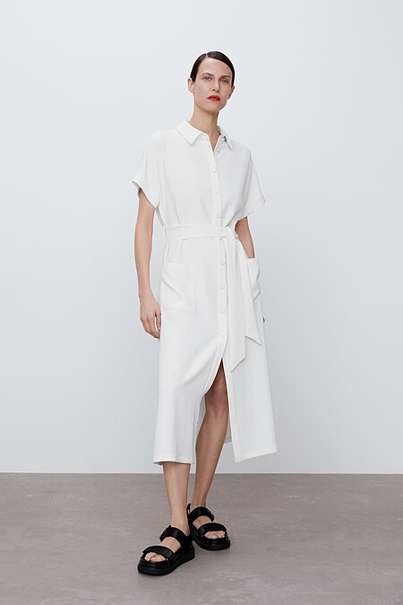 ▼白色襯衫洋裝推薦款式:Zara 配腰帶襯衫式洋裝,售價NT$1,990