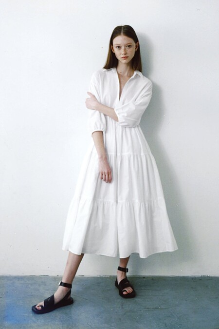 ▼白色襯衫洋裝推薦款式3:Meier Q 氣質澎袖襯衫領蛋糕洋裝,售價NT$790