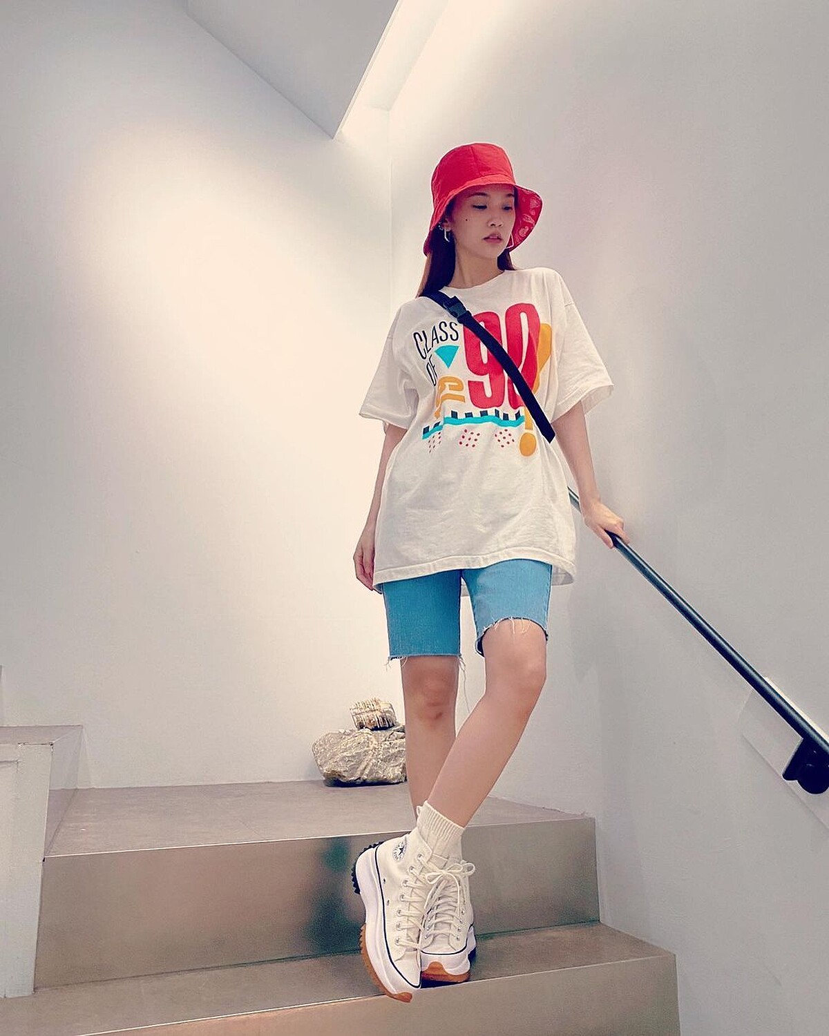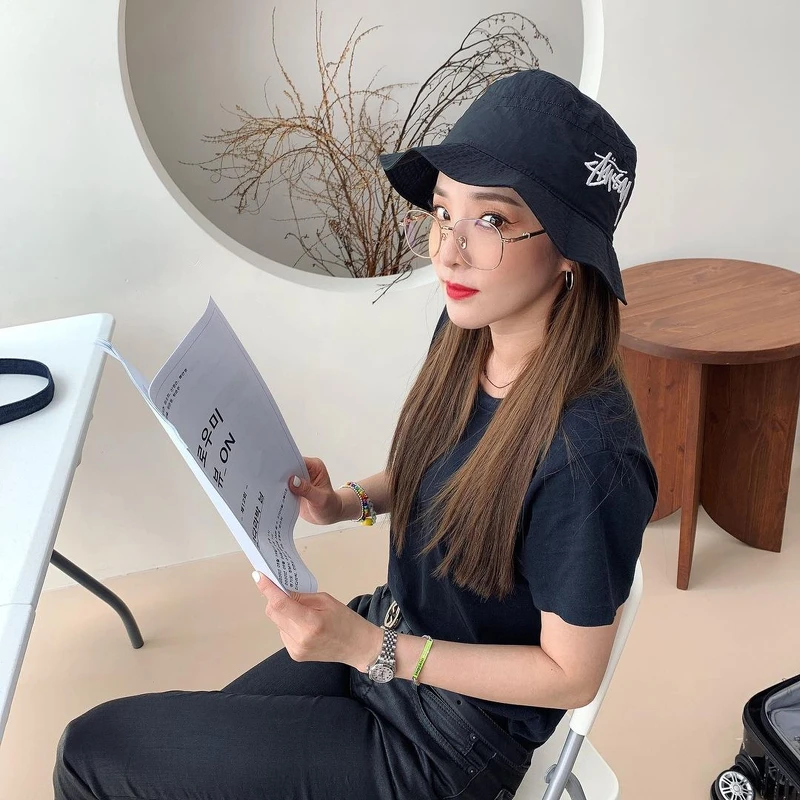兩頰有肉的圓臉型,就很適合入手一頂漁夫帽來修飾臉型,切記在挑選的時候,要盡量避免過淺的帽筒造型,可選擇較長的帽簷款式,將前緣帽簷反摺不同造型,像是韓國女星孔曉振就是很好的穿搭範例。