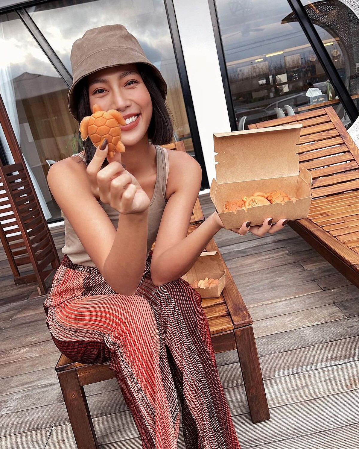臉型偏長的長型臉,挑選漁夫帽切記別選帽筒過高的款式,不妨像Dara挑選帽簷有造型的漁夫帽款式,還能將高額頭藏起來,修飾一下過長的臉部。