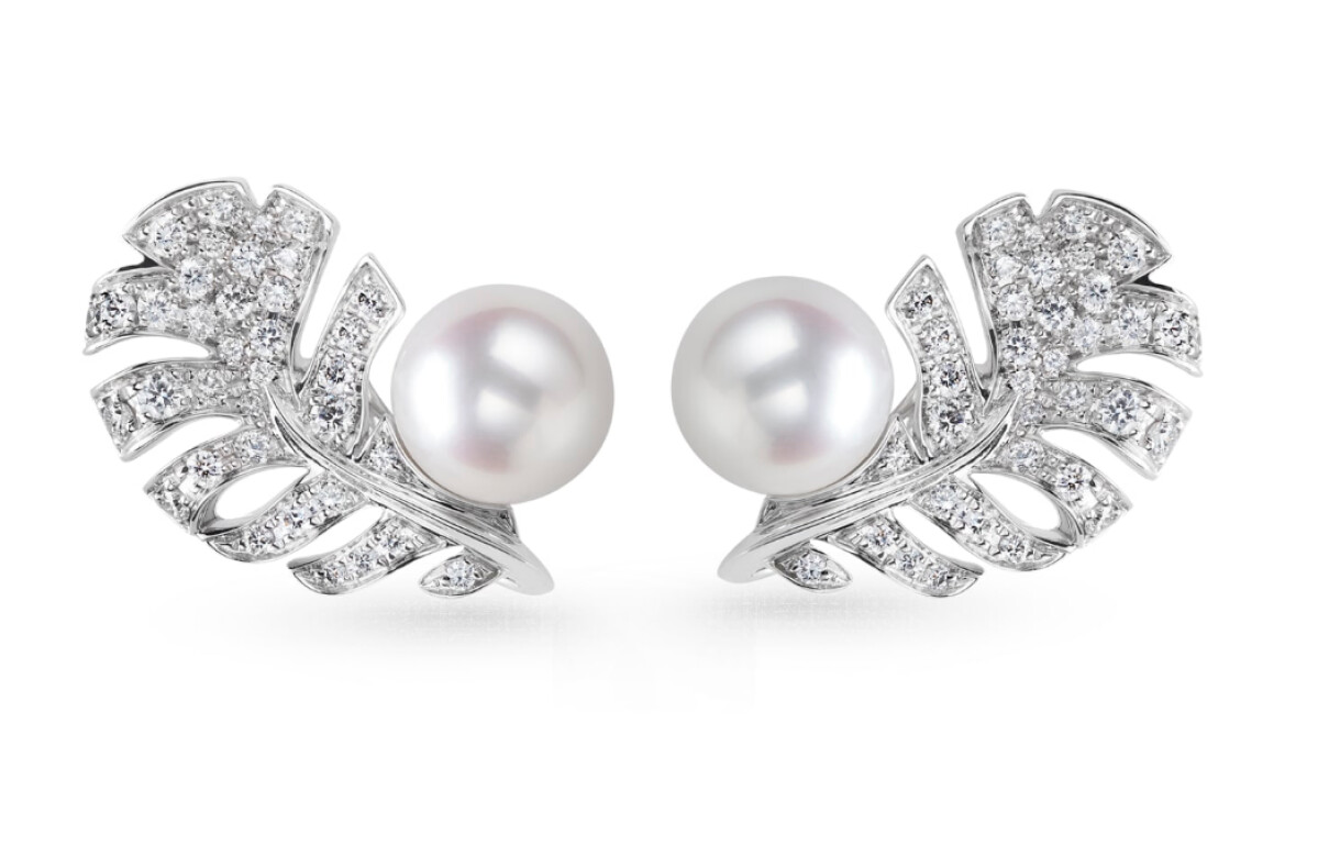 加碼推薦:Mikimoto花環造型鑽石珍珠耳環,18K白金搭配日本Akoya珍珠(直徑6.25mm)和鑽石,售價NT$38,000,可搭配白K金花環設計配件,或單獨配戴日本Akoya珍珠