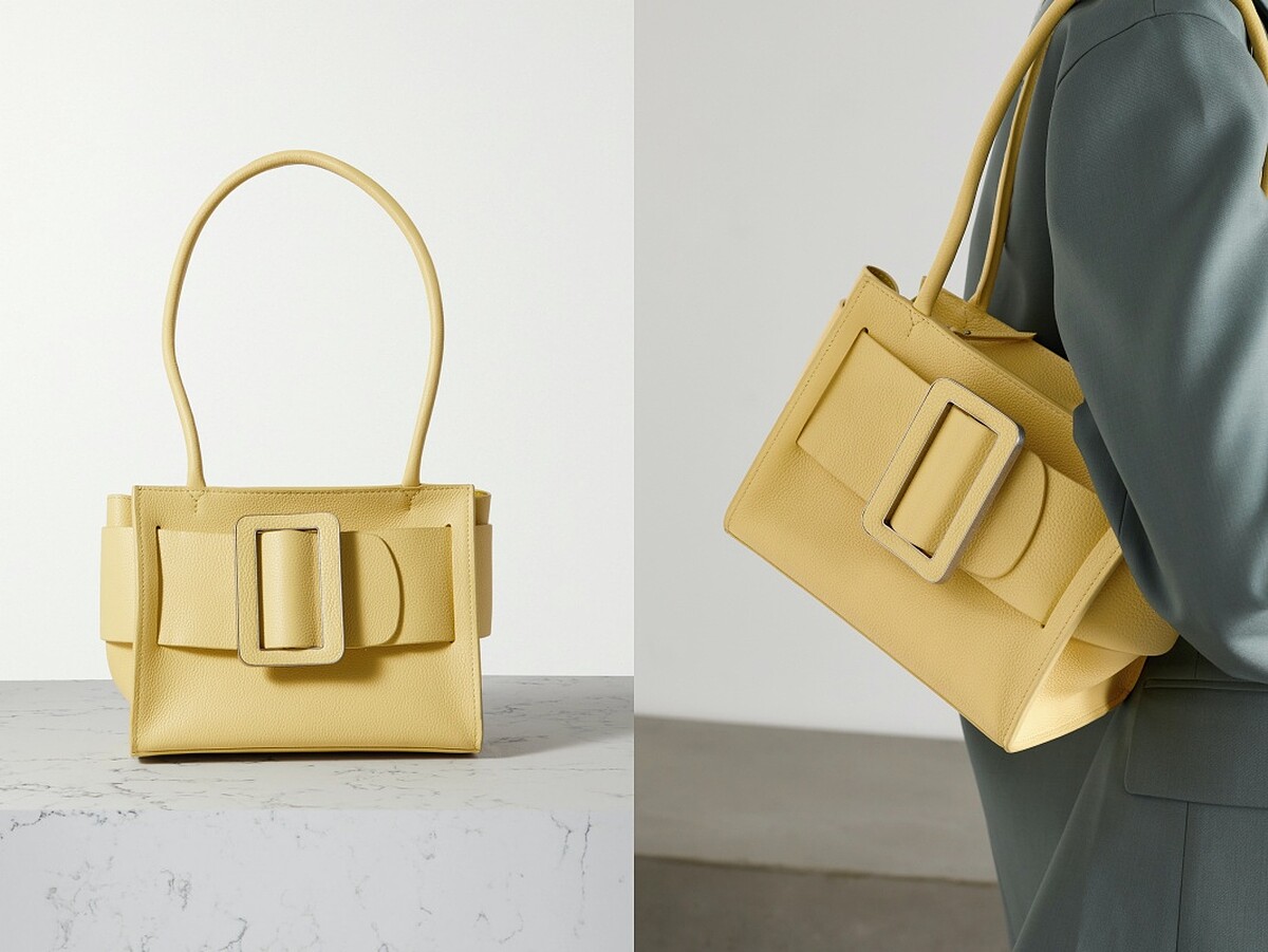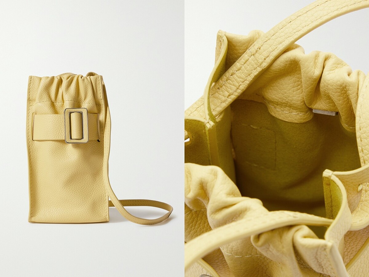 同一個奶油黃色,Boyy還有另一款肩揹小包,以小牛皮材質製作,包口皺摺設計內藏小小的金屬釦。