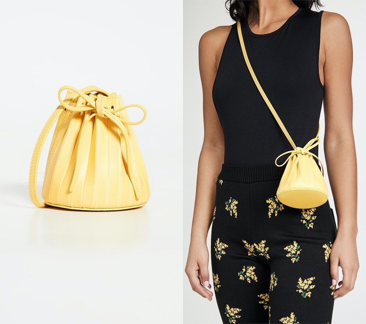 奶油黃包包推薦6:Mansur Gavriel皺摺迷你水桶包