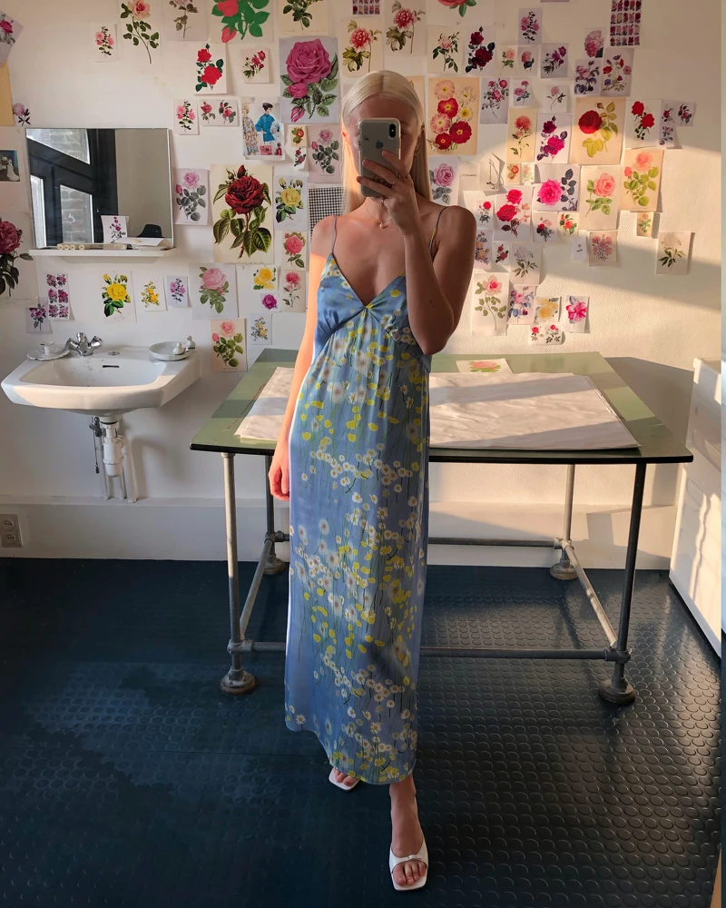 帶有法式慵懶性感風格絲緞洋裝,經典又簡約的剪裁,一件套上就很時髦,加上緞面材質通常都非常的親膚,既舒適又清涼,不失為夏日居家穿著的時髦選擇。