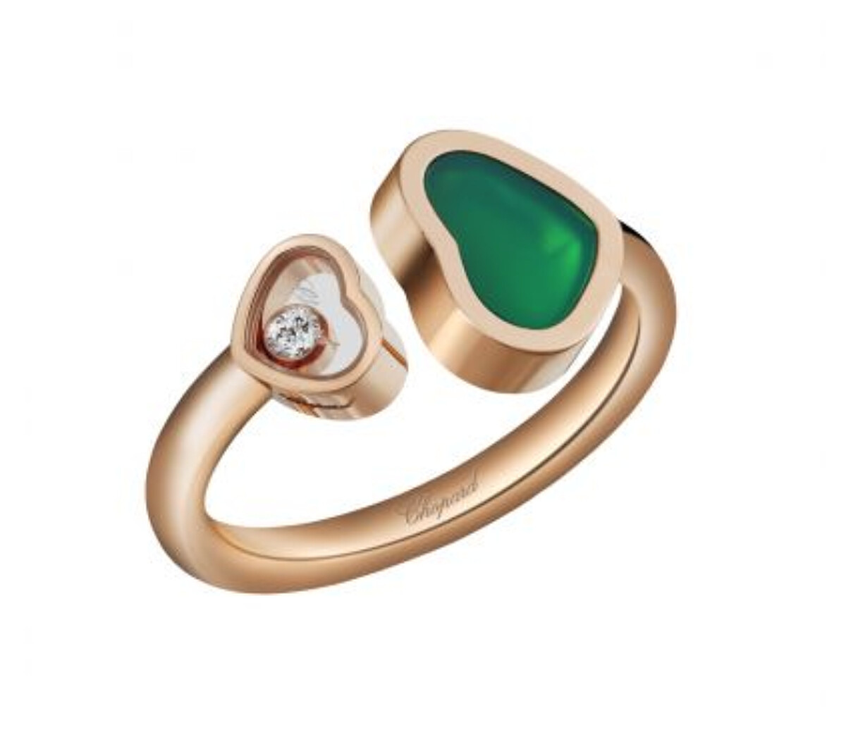 Happy Hearts 系列戒指,18K黃金鑲嵌孔雀石與鑽石